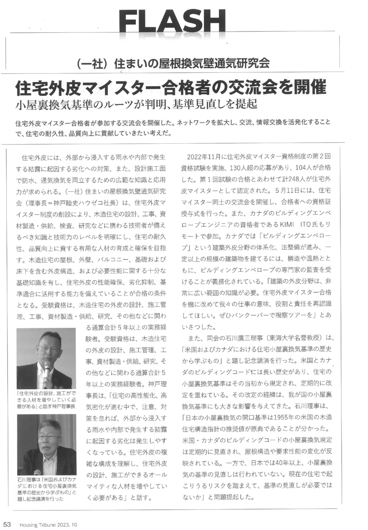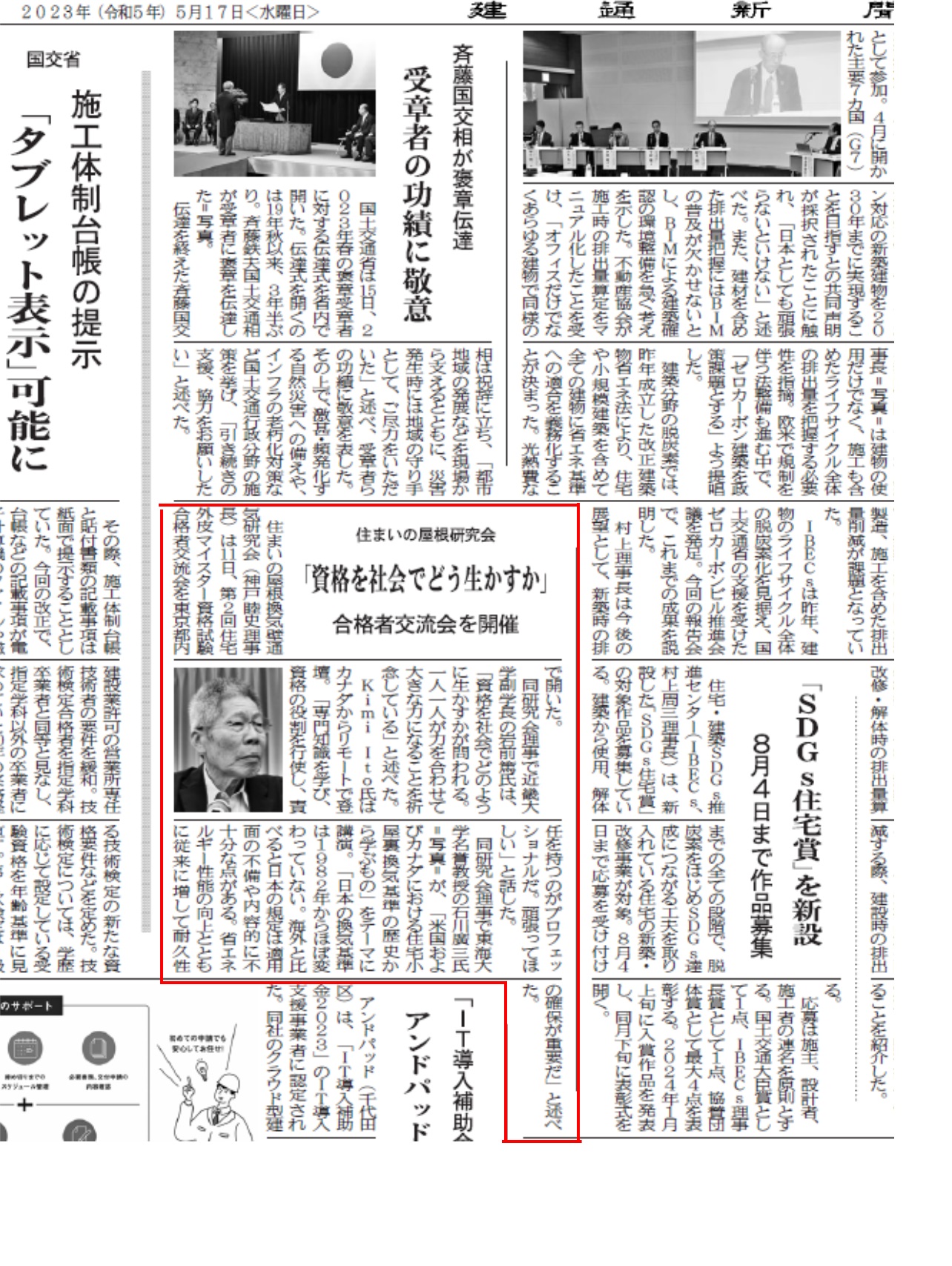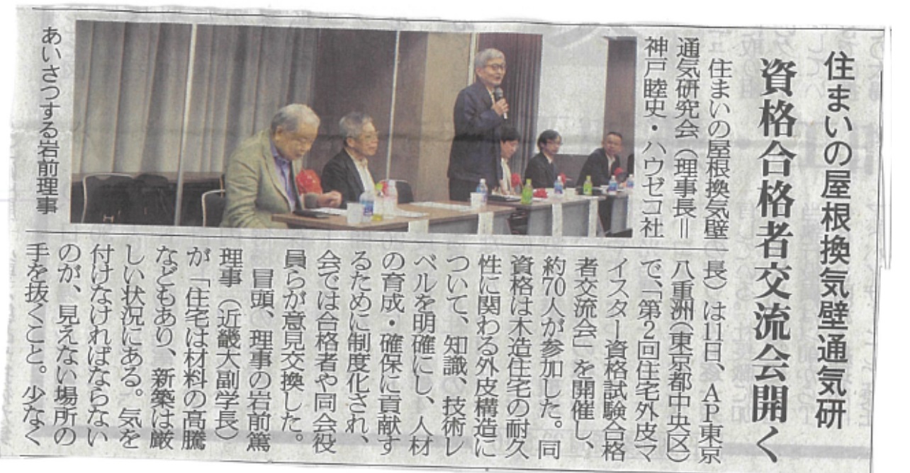 5月11日に開催致しました第二回住宅外皮マイスター資格試験合格者交流会が、プレス各誌に記事掲載されました。