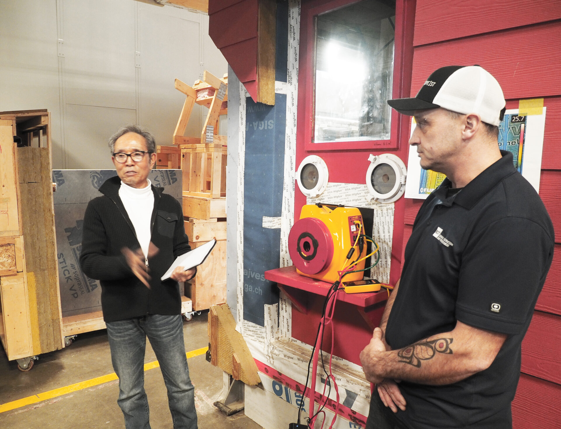 2日目は高断熱住宅設計の第一人者のChris Mattock(クリス・マトック)氏よりR2000 住宅やパッシブ住宅のこれからのあり方についての講義を受け、地下室における地下浸透水の排水、外壁の防水・気密設計や気候変動から懸念される逆転結露に対する考えなどを講義いただきました。また、BCIT(ブリティッシュコロンビア工科大学)のHPBL(高性能建築研究施設)を視察しました。