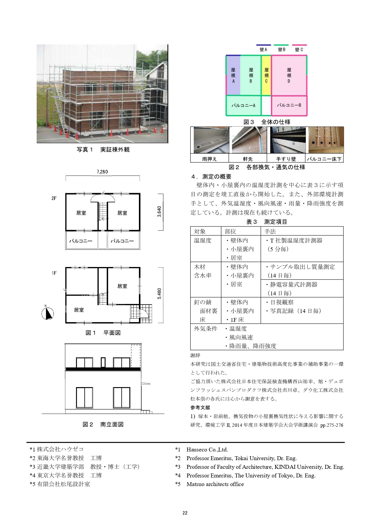 木造住宅の耐久性向上に関わる実験などを実施して発表⑪ 学会論文 2016.08.28 木造建築の耐久性向上を目的とした、実大木造建築物の各部位における水分の挙動に関する研究 その1 研究の概要 ハウゼコは、木造住宅の耐久性向上に関わる建物外皮の構造・仕様とその評価に関する研究をはじめとして、早くから多くの実験に積極的に取り組み、研究成果を建築学会で発表してきました。