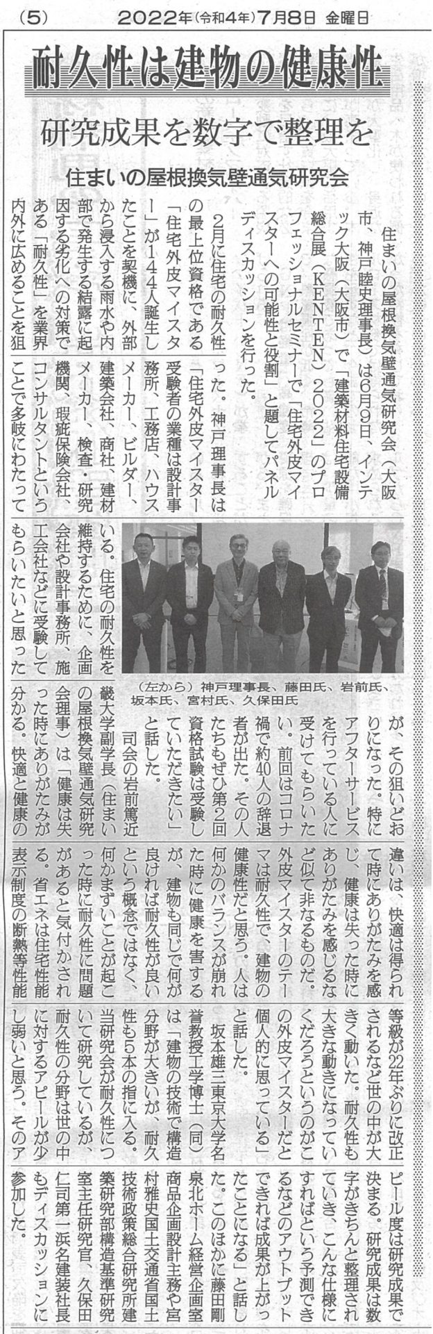 2022年6月9日に開催されましたKENTENセミナーについて、日刊産業新聞、日刊木材新聞、日本住宅新聞に記事掲載されました。