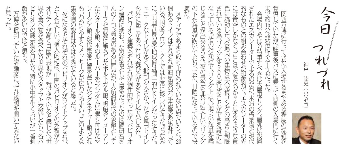 万博を批判していた評論家に、 ぜひ感想を聞いてみたいと思った。
